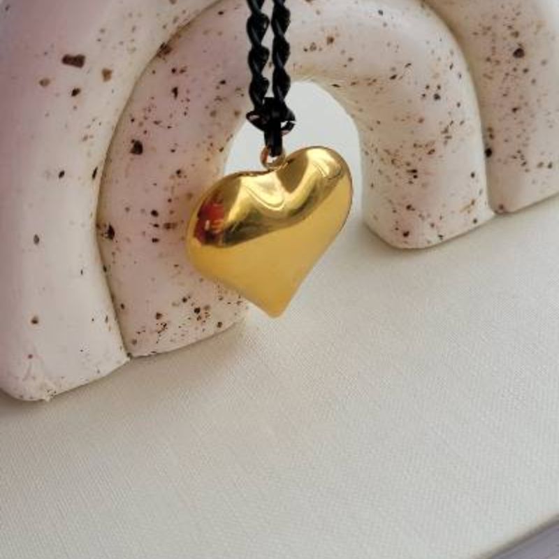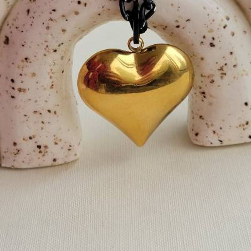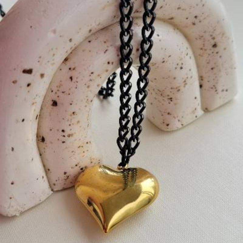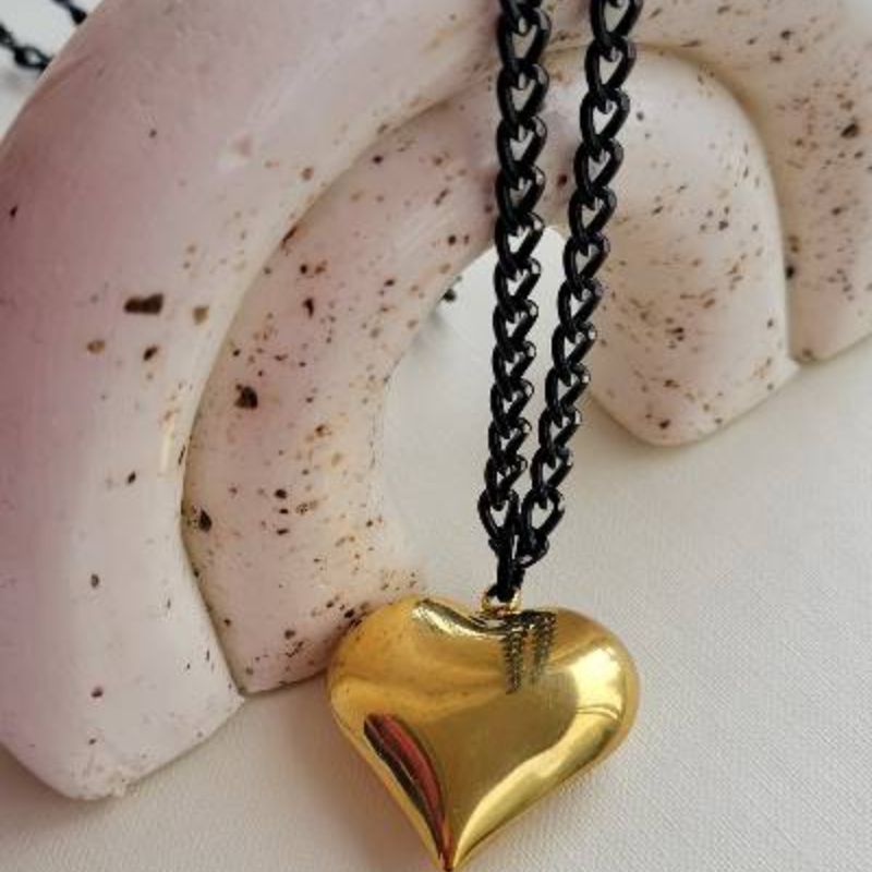 Μενταγιόν καρδια σε χρυσό σε μαύρη αλυσιδα γκουρμέ
